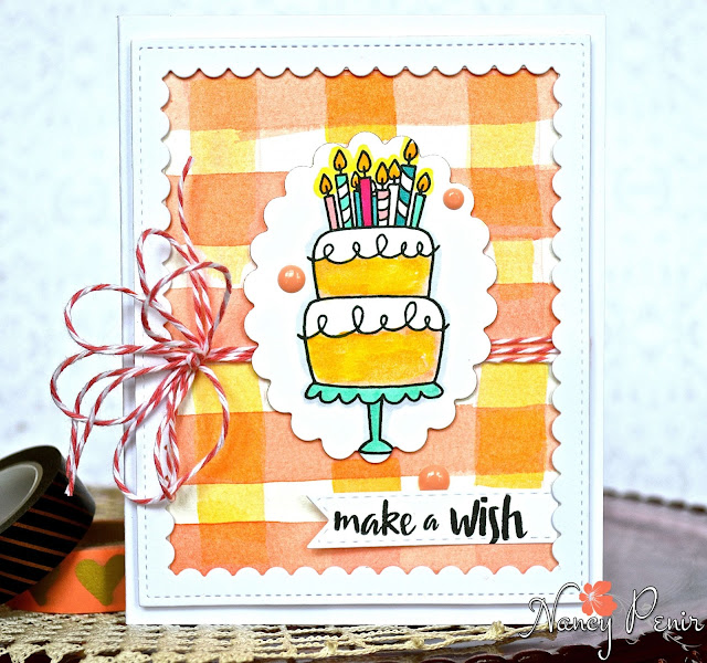 Once I embossed the frame and cupcake in white, I masked it, and stamped