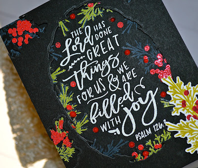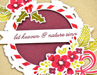 From watercolor paper I cut the leaf, and wet painted with my pan watercolors. Then gold embossed the 2nd or top rim and sentiment with gold embossing powder.