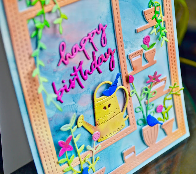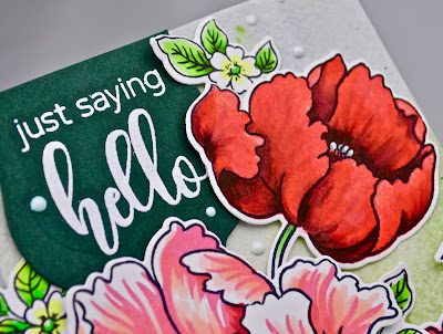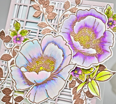 I also colored the trio of bloom die cuts with copics, and framed the card in black.