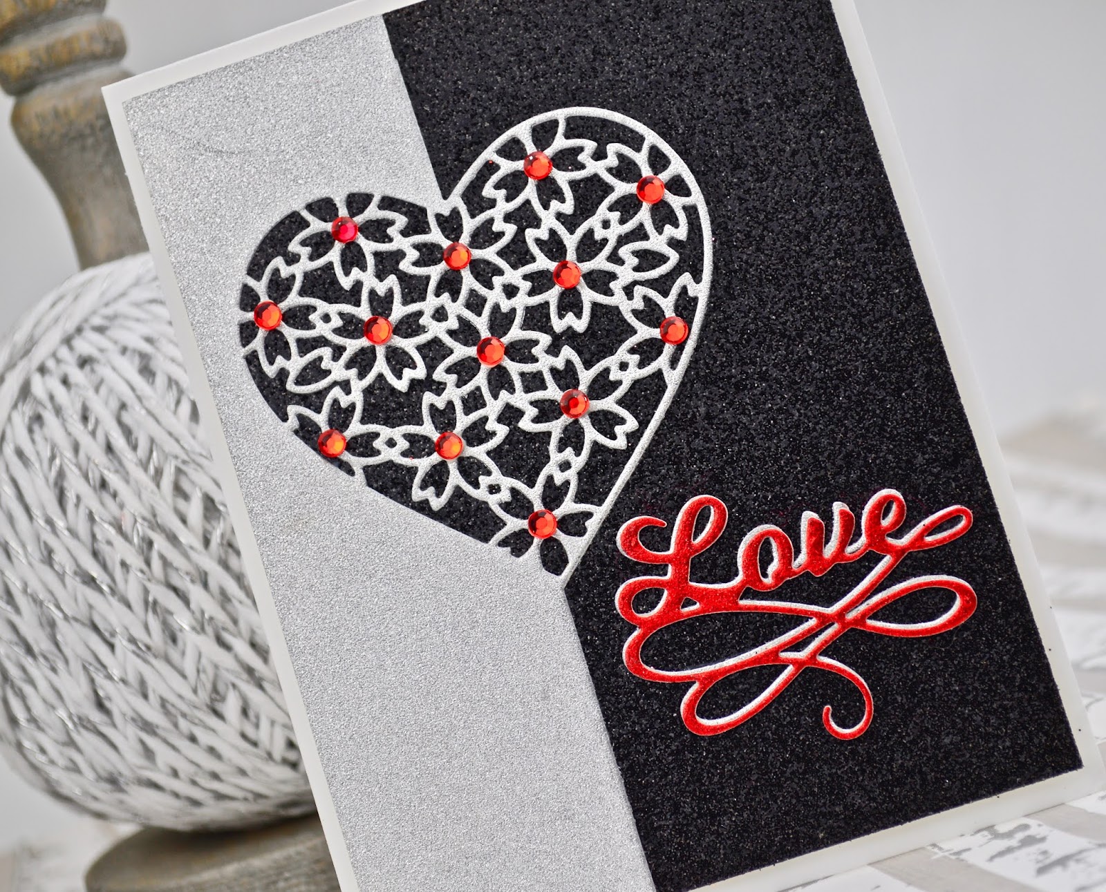 Added punch with the 'Love Flourish' die cut from red glitter paper!