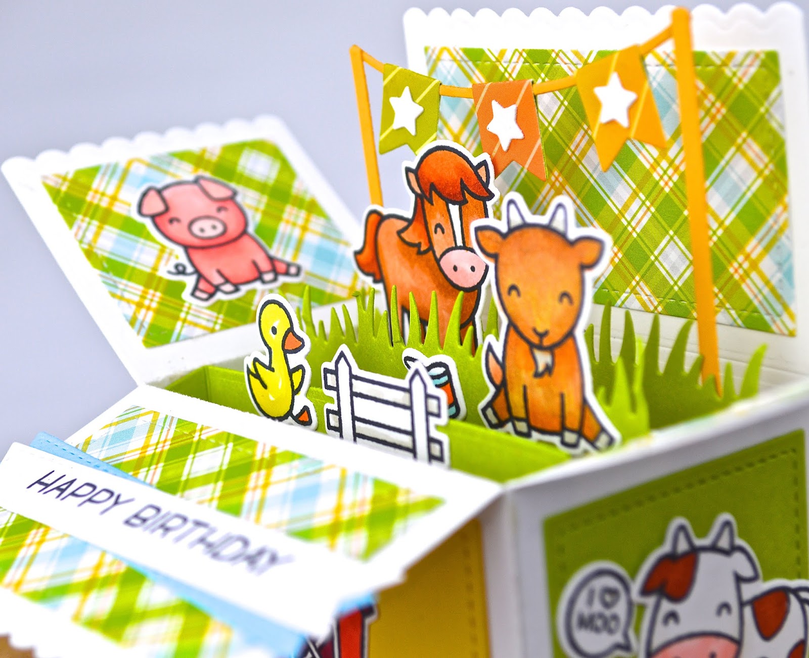 It's all about farm life with my box card made with Lawn Fawn's sweet images!