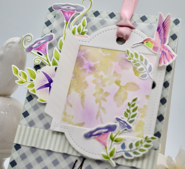 I added stamped Morning Glories (The Greetery), and deepened parts of the stamping